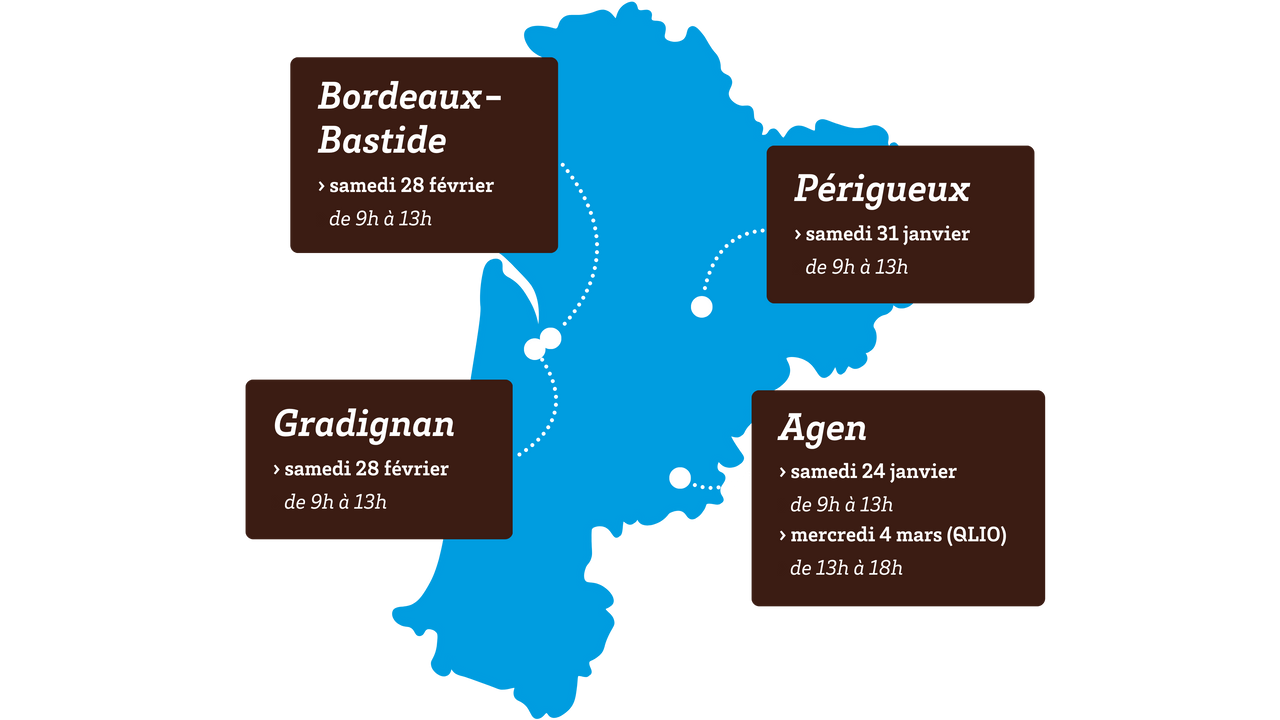 Tout au long de l'année universitaire, l'IUT de Bordeaux sera présent sur plusieurs salons professionnels dédiés aux formations qu'il propose. Ces rendez-vous sont l'occasion idéale de découvrir en détail notre offre complète de formation en BUT, licences professionnelles, diplômes universitaires, diplômes d'État, ainsi que les dispositifs de VAE, VAPP et les formations courtes.